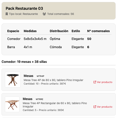 Te preparo un presupuesto detallado con todos los elementos para amueblar tu espacio.